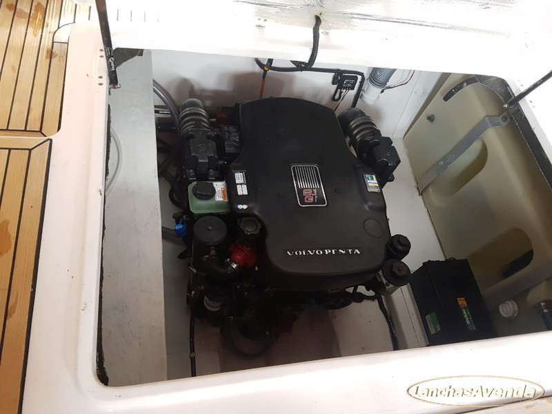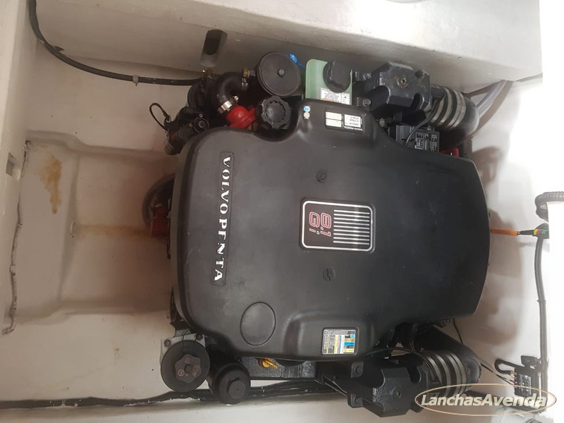 Motorização Volvo Penta 375hp refrigerado a água doce com micro-consumo à gasolina , rabeta com hélices contra voltantes.