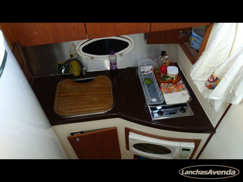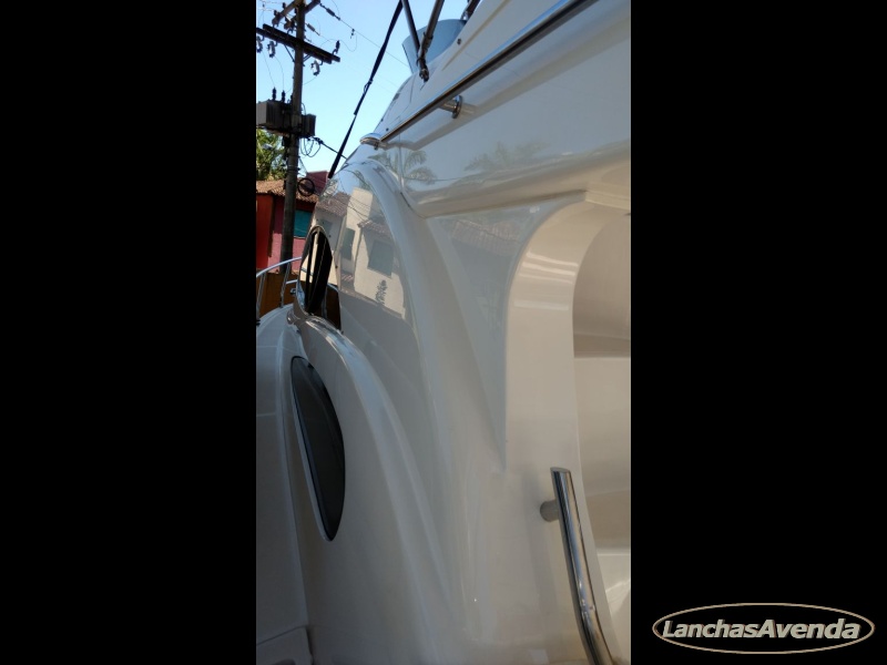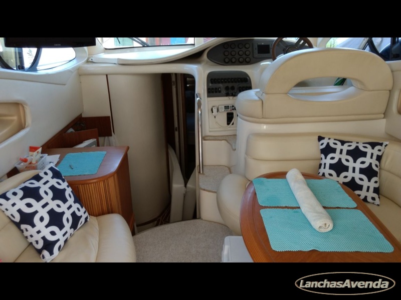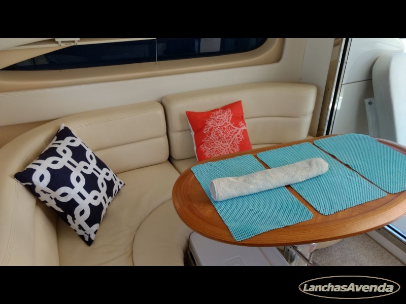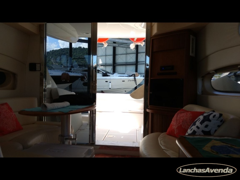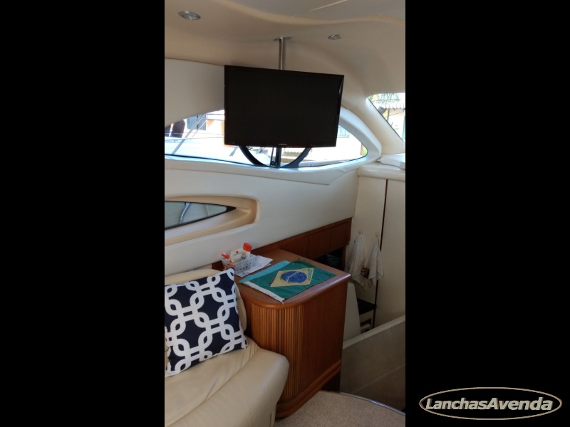 Suite de proa + cabine a meia náu + banheiro + estar + dinette + amplo cockpit de comando + amplo fly bridge + ampla popa.