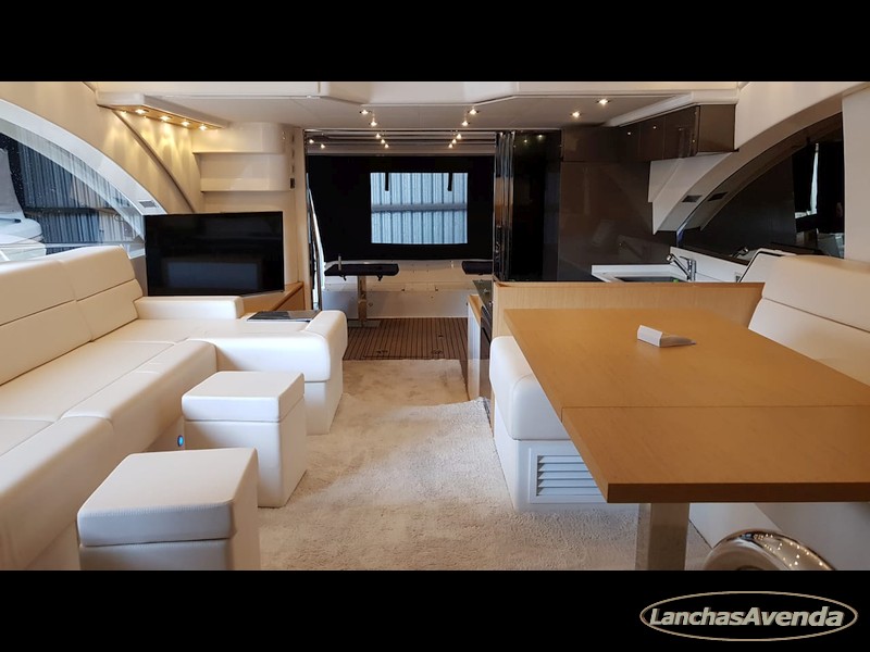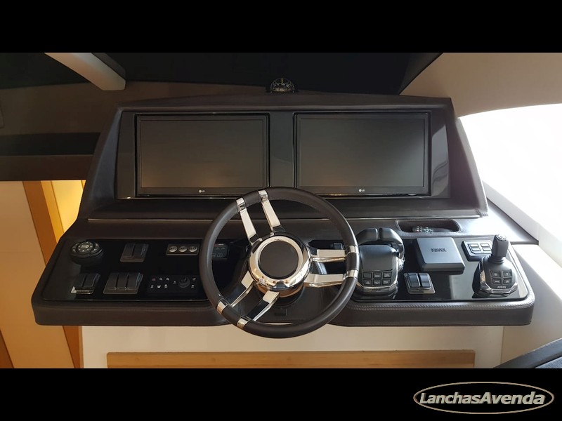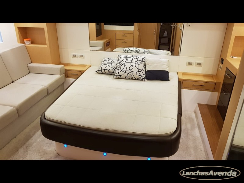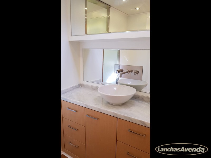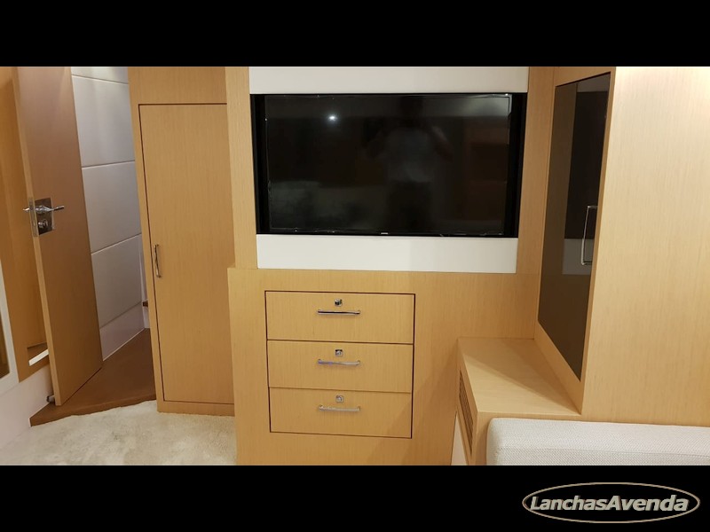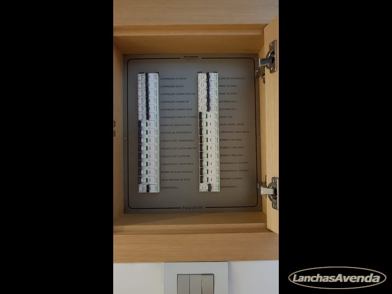 Suite master de casal + 2 suites completas + cozinha completa + banheiro + amplo salão + ampla popa + amplo fly bridge + cabine de marinheiro.