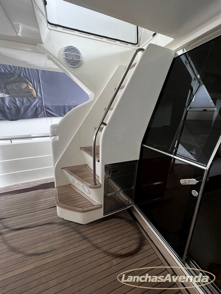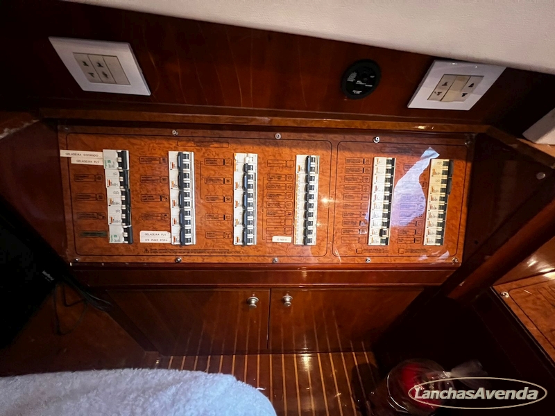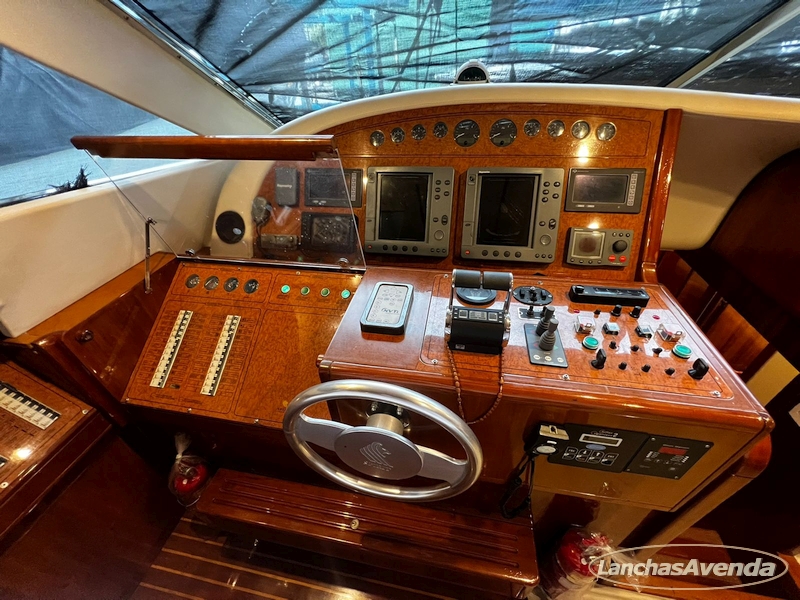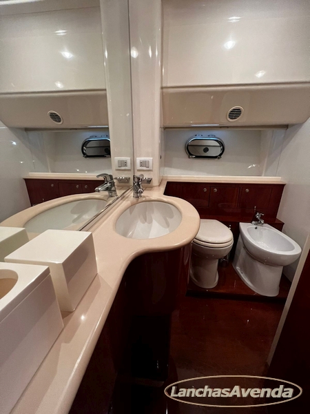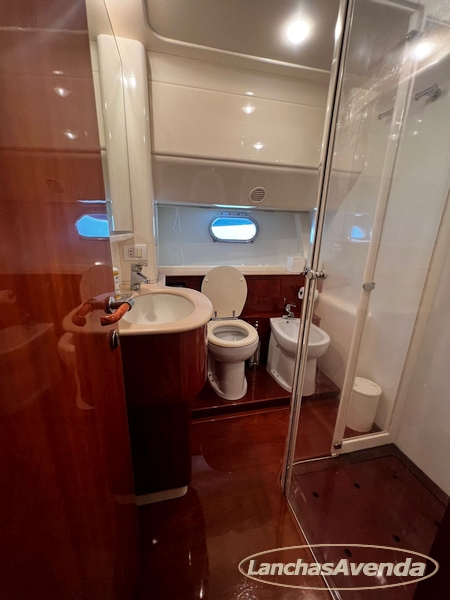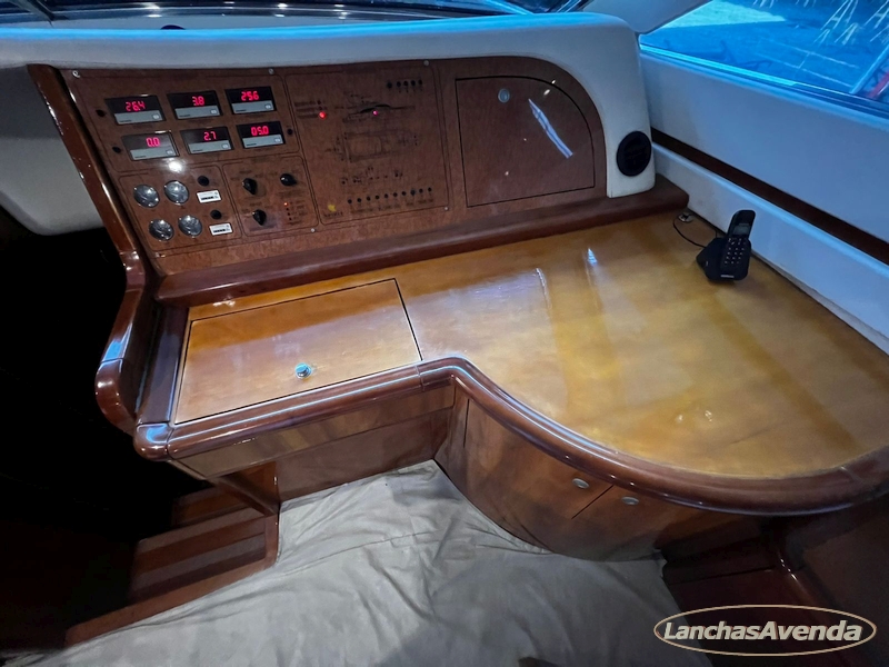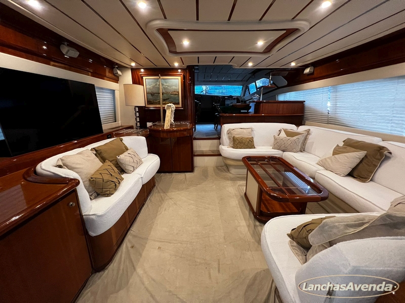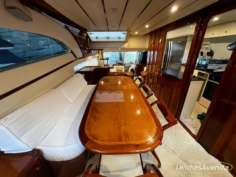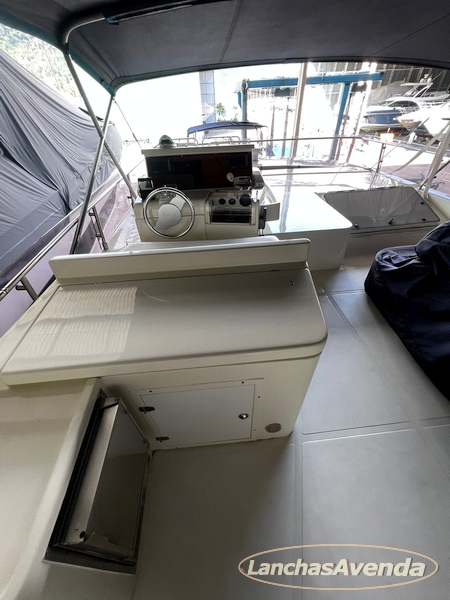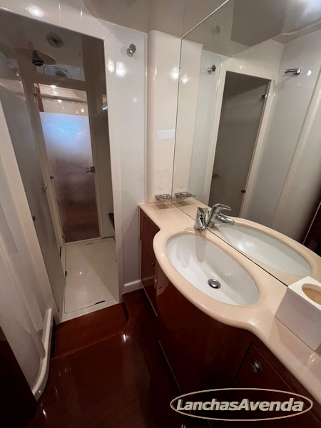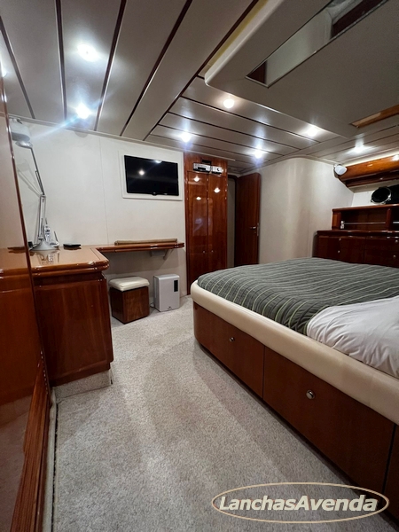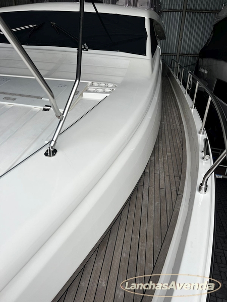 Suite master de casal + suite para segundo casal + 2 suites de solteiros + cozinha completa + banheiro + amplo salão + ampla popa + amplo fly bridge + cabine de marinheiros.