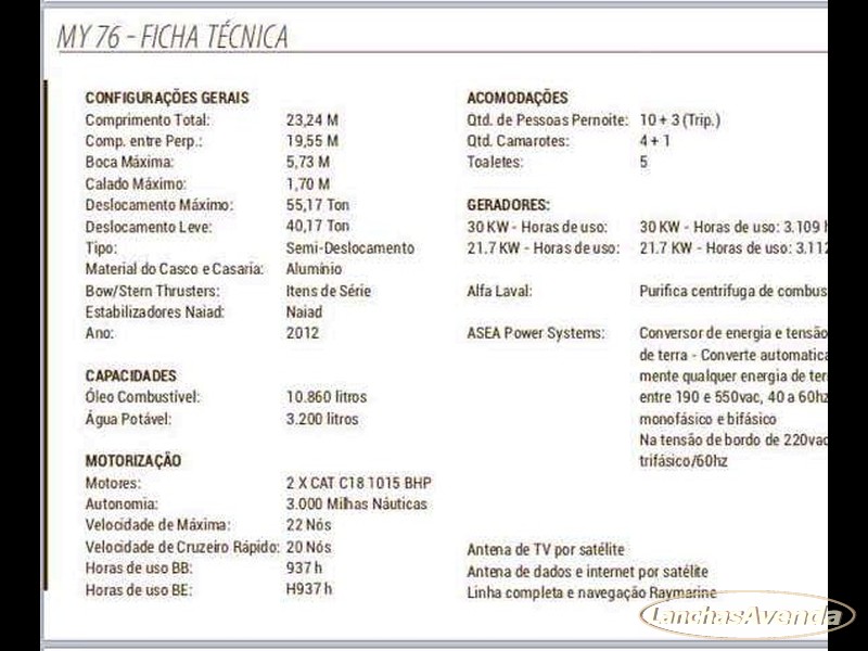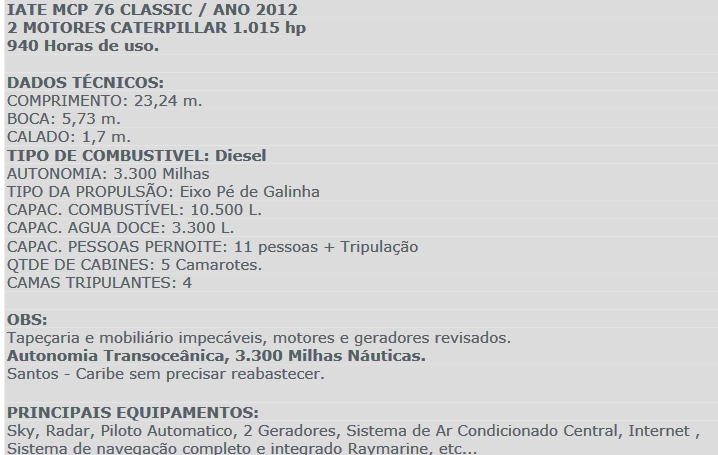 AS INFORMAÇÕES E FOTOS CONSTANTES NAS FICHAS DAS EMBARCAÇÕES ANUNCIADAS SÃO DE RESPONSABILIDADE EXCLUSIVA DOS CLIENTES ANUNCIANTES.